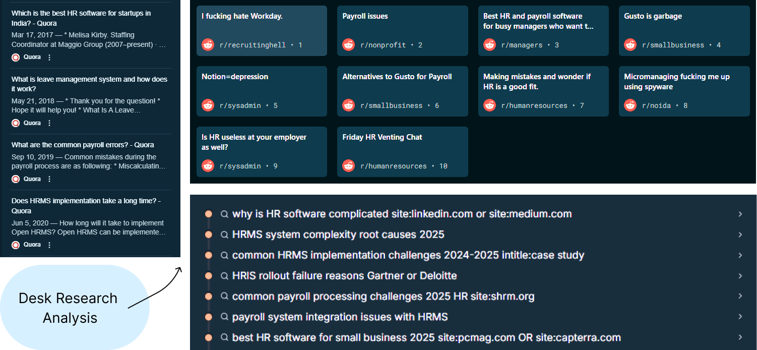 Problem: From stakeholder conversations and desk research, we uncovered recurring pain points: